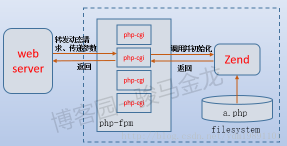 这里有一点要注意,CGI协议时,php-cgi的启动是受Web Server控制的;fastcgi协议时,php-cgi的启动跟Web Server没有任何关系了,它只受php-fpm的调度。而且,这个时候Web Server转发请求以及传递参数给某个php-cgi都需先经过php-fpm的调度,之后再由php-fpm控制这个请求具体交给那个php-cgi处理。
