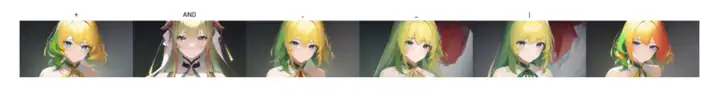 - 用 and 连接:(red hair:1.1) AND (yellow hair:1.25) AND (green hair:1.4)