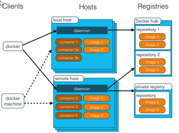 docker主机(Host):安装了Docker程序的机器(Docker直接安装在操作系统之上);