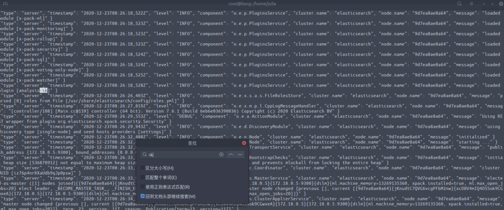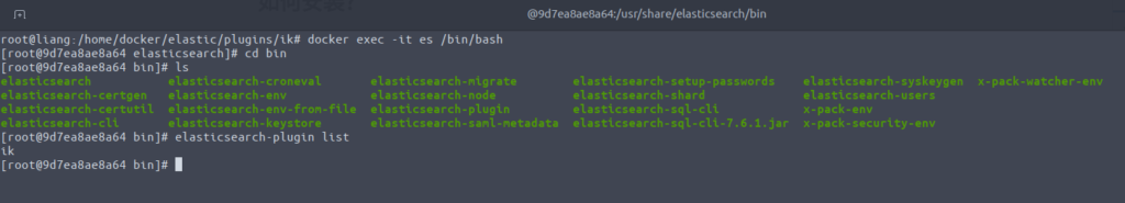 进入es容器中,通过 elasticsearch-plugin 查看插件是否加载进来