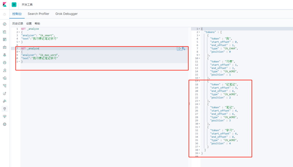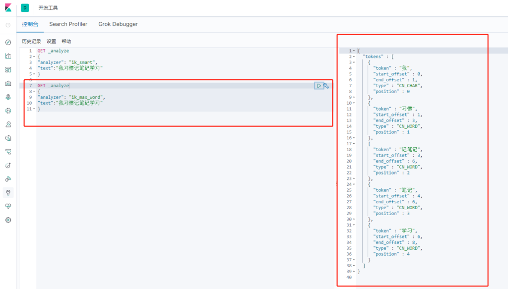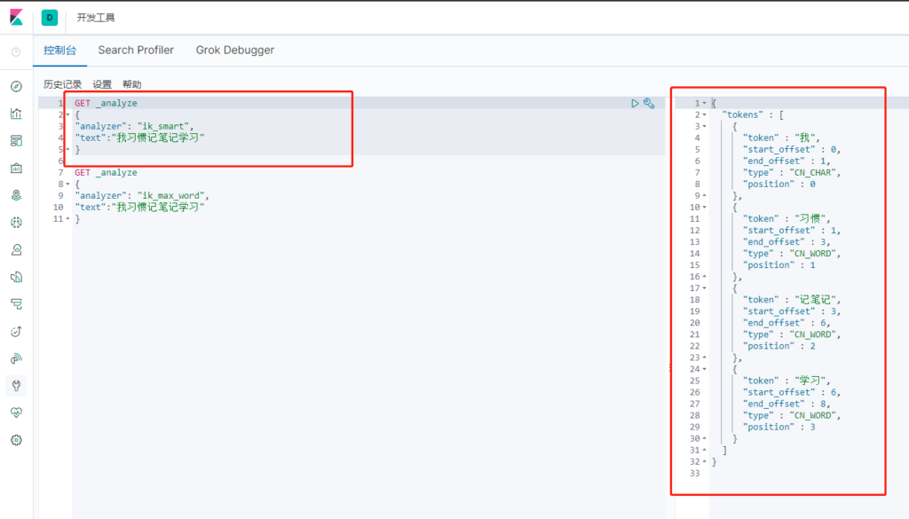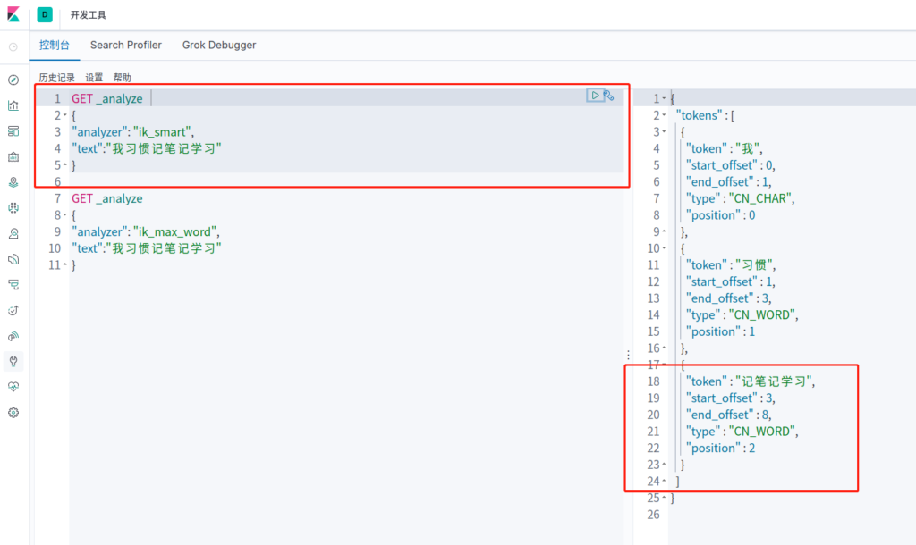 IK提供了两个分词算法:ik_smart 和 ik_max_word ,其中 ik_smart 为最少切分,ik_max_word 为最细粒度划分!