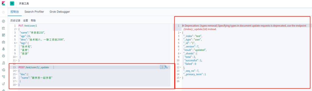 这种更新数据方式,不建议使用,因为在数据结构不完整的情况下,更新,会导致原来的文档数据丢失。