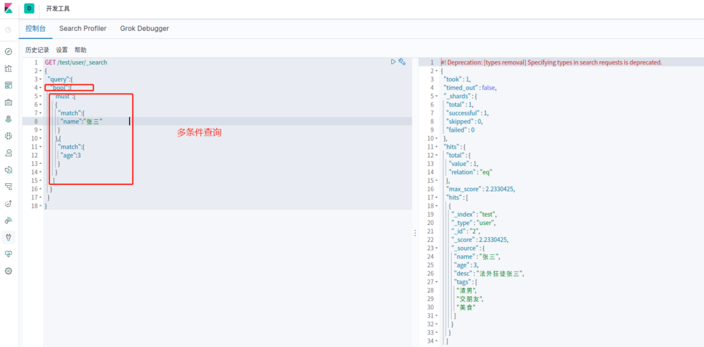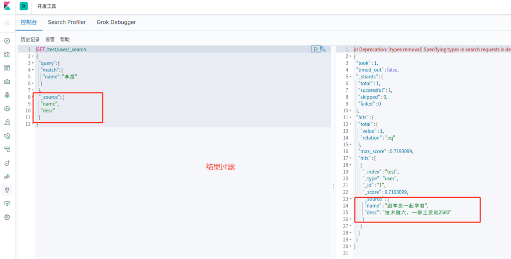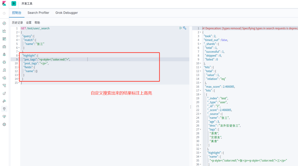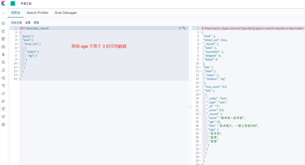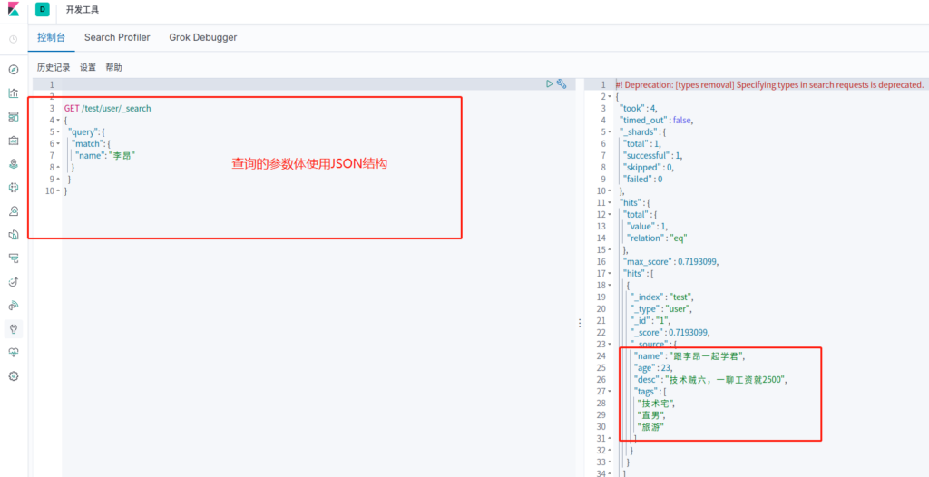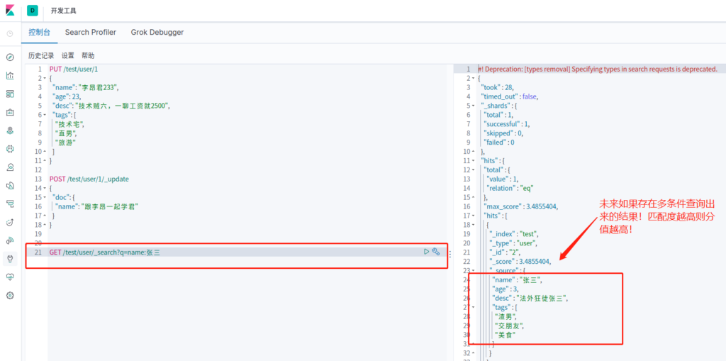 - match,会使用分词解析器!先分析文档,然后通过分析的文档进行查询!